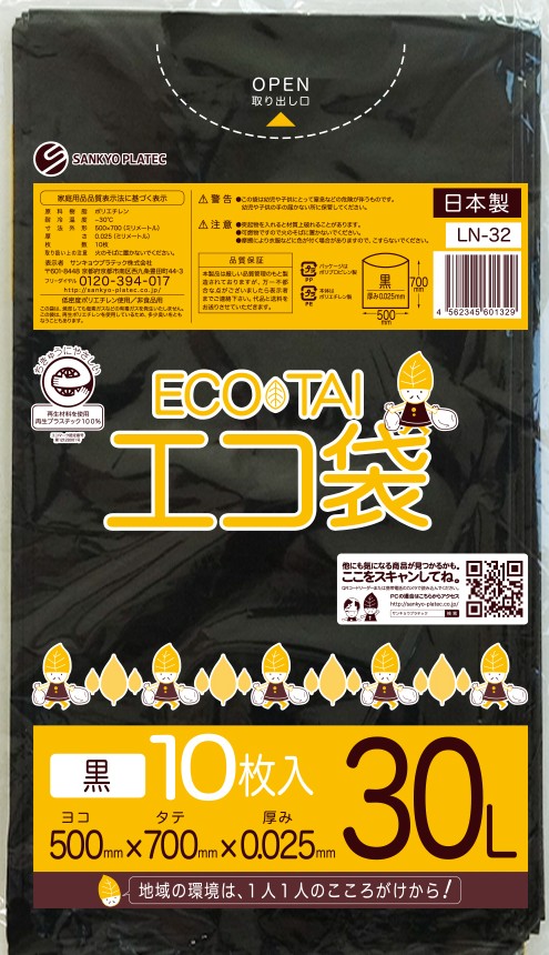 エコマーク付き ゴミ袋 30リットル 黒 0.030mm厚(10枚×100冊)