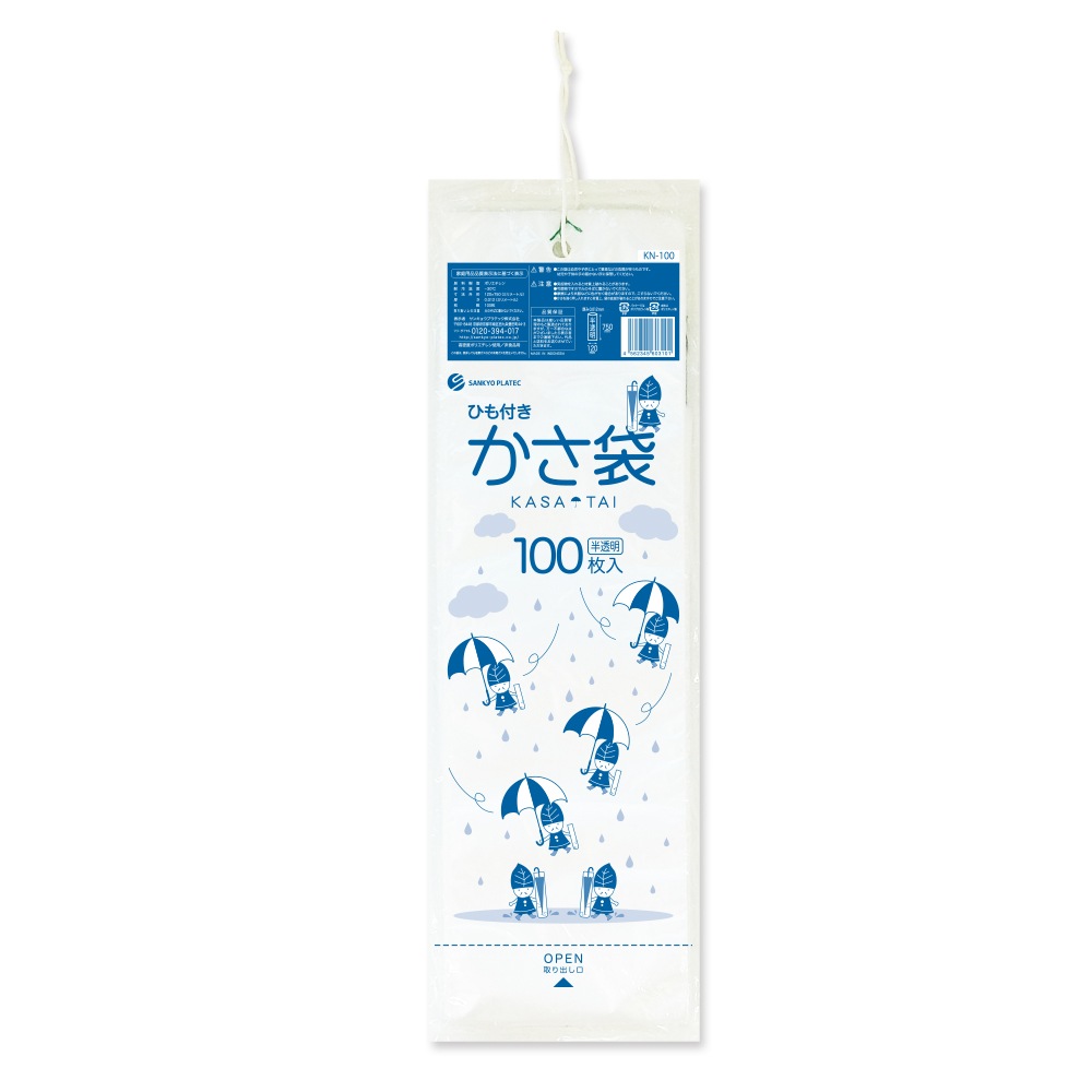 ひも付きかさ袋 0.012mm厚 半透明(100枚×60冊)