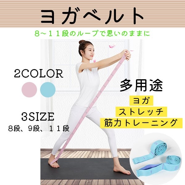 ヨガベルト ストレッチ 筋力トレーニング ダイエット エクササイズ 美ボディ フィットネス ジム 運動 伸縮性 シンプル 持ち運び