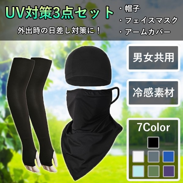 アームカバー フェイクマスク 帽子 3点セット 接触冷感 UVカット 紫外線対策 日焼け防止 運動 快適 通気性 伸縮性 男女兼用...