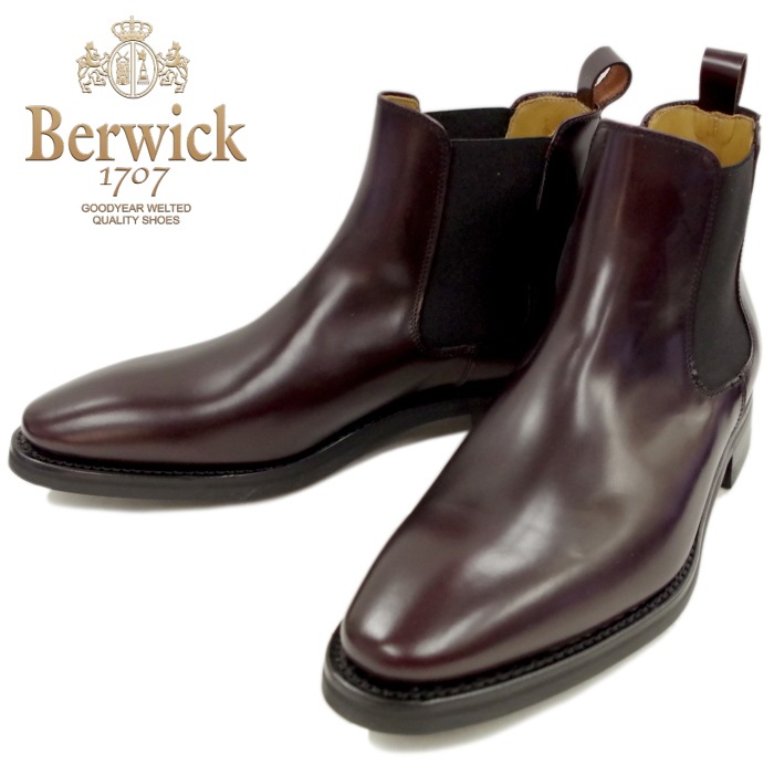 バーウィック サイドゴアブーツ Berwick 靴 848 バーガンディー チェルシーブーツ ダイナイトソール スペイン製 ビジネ...