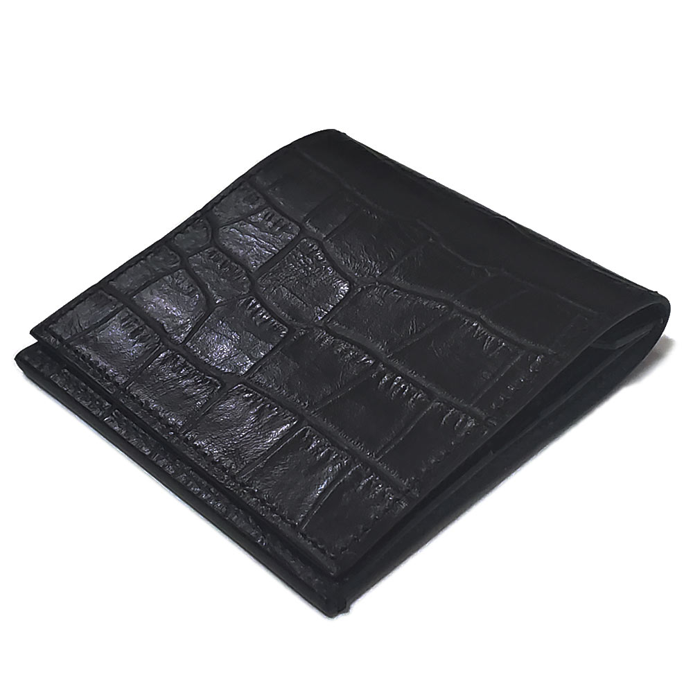 植物タンニン鞣し牛革 クロコダイル調エンボス仕上げ 超薄型 二つ折り レザーウォレット/薄い財布