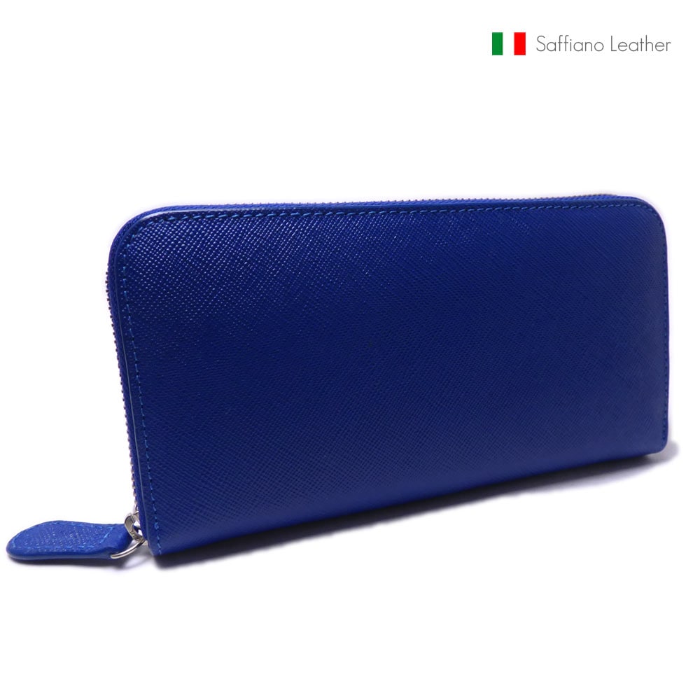 イタリアン サフィアーノレザー(ブルー) インナークリームイエロー仕上げ ラウンドファスナー式 ロングレザーウォレット 牛革/革財...