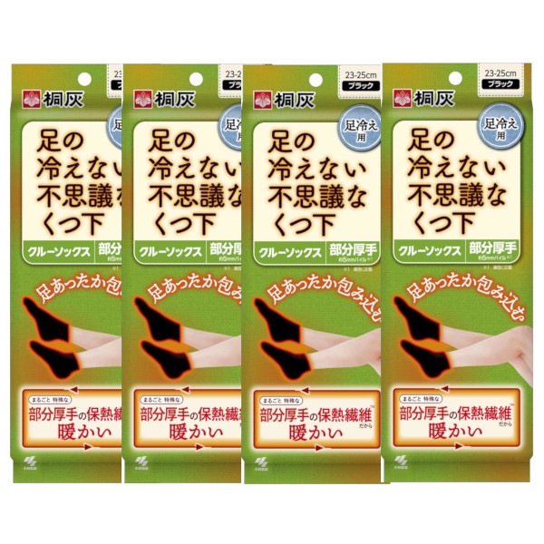 足の冷えない不思議なくつ下 クルーソックス ブラック 23-25cm×4【4個セット】 桐灰 冷え 靴下 あったか