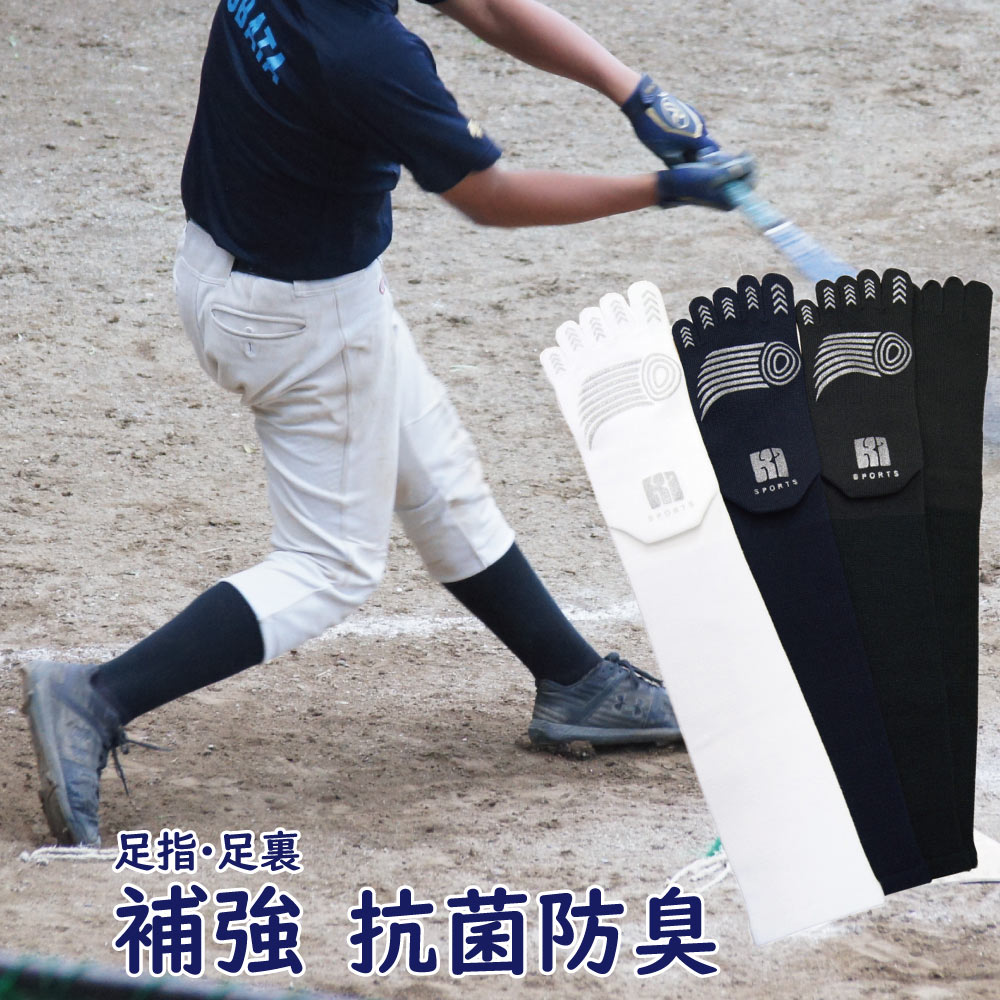 6310:野球 【 足指足裏補強 丈夫で破れにくい!】 抗菌防臭加工 5本指ハイソックス(スベリ止め付) M、L、LL 24-26...