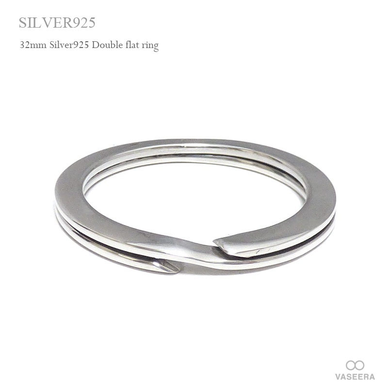 シルバー925(純銀製) 31mm キーリング 平型2重カン /フラットダブルリング 【SILVER925/キーホルダー/パーツ...