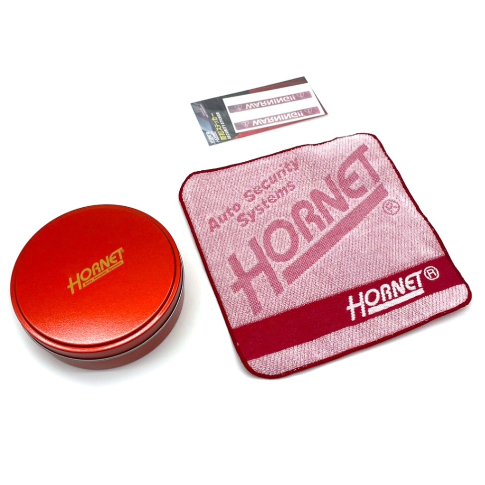 ホーネット缶(赤) リレーアタック対策用 防犯ステッカー HORNETミニタオル入り