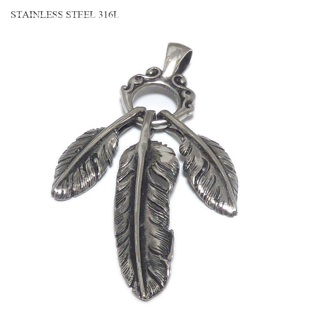 57mm ネイティブ系 三連フェザー アラベスク装飾 アンティーク調 ステンレス ペンダントトップ / メンズ 【サージカルステ...