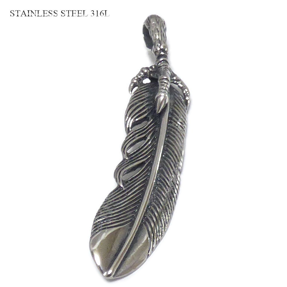 68mm ネイティブ系フェザー イーグルクロウ バチカン アンティーク調 ステンレス ペンダントトップ / メンズ 【サージカ...