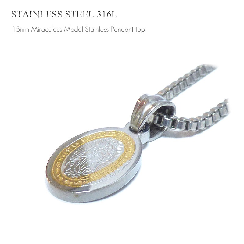 15mm(S)聖母マリアの不思議のメダイ 祈祷文ゴールドカラー仕上げ ステンレス ペンダント トップ 【ステンレス・スチール31...