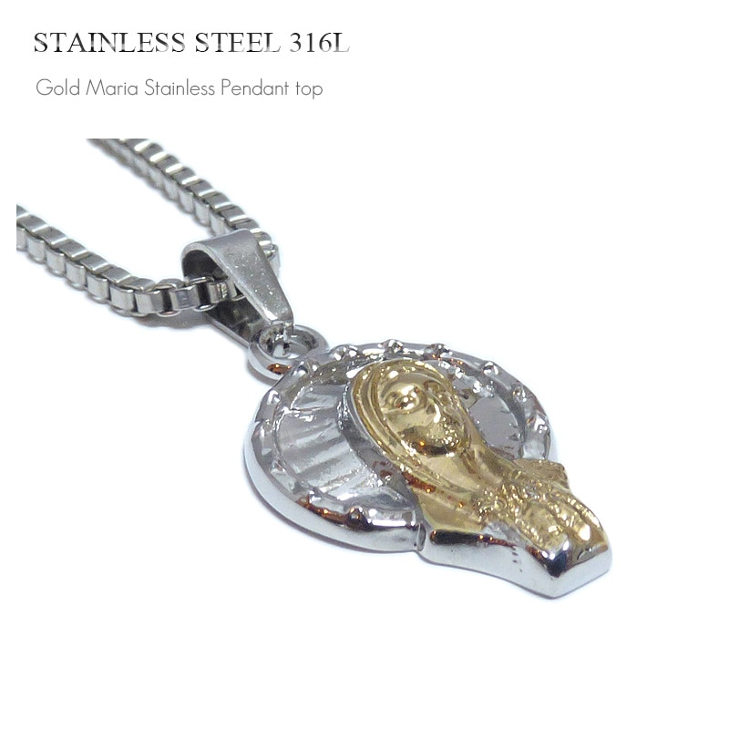 聖母マリア ゴールドバストトップ ステンレス ペンダント トップ 【ステンレス・スチール316L/サージカルステンレス】