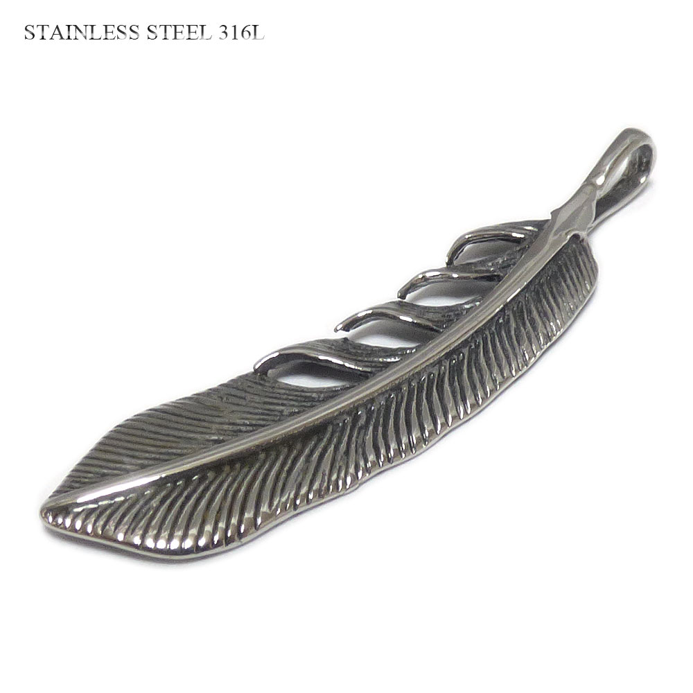 55mm ネイティブ系フェザー アンティーク調 ステンレス ペンダントトップ / メンズ 【サージカルステンレス】