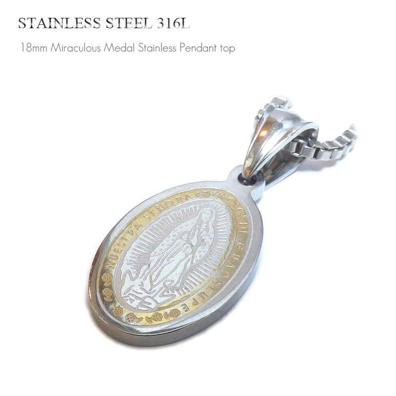 18mm(M)聖母マリアの不思議のメダイ 祈祷文ゴールドカラー仕上げ ステンレス ペンダント トップ 【ステンレス・スチール31...