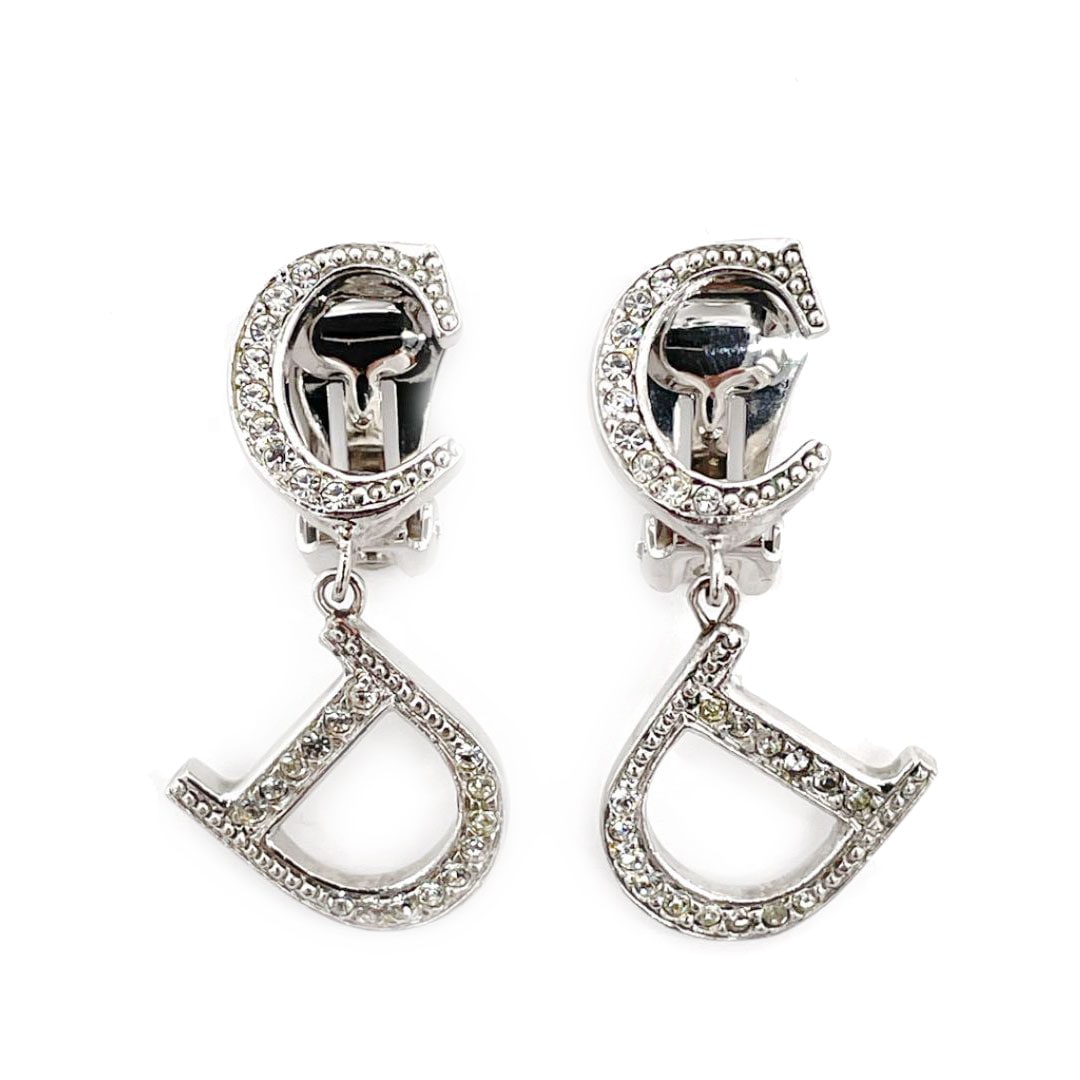 Christian Dior クリスチャンディオール CDロゴ イヤリング ラインストーン シルバー