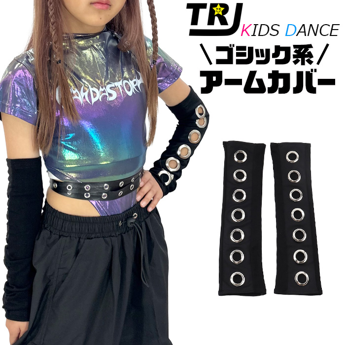 正午まで当日発送(土日祝除く)アームカバー 穴あきリング ロンググローブ アームウォーマー 暗黒系 キッズ 子供 女の子 無地 ブ...