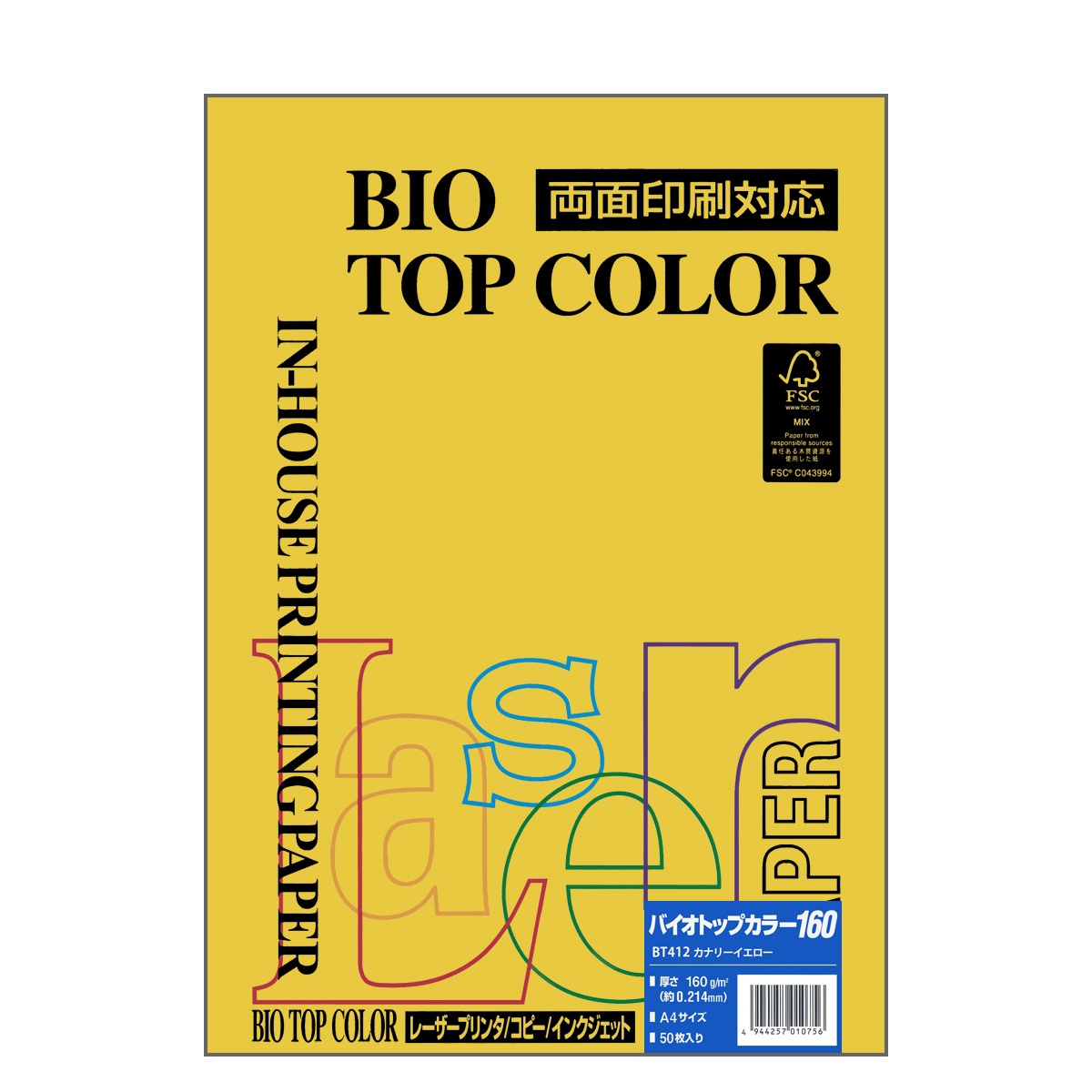 伊東屋 バイオトップカラー BT412 カナリーイエロー A4サイズ 160g/m2 50枚入り