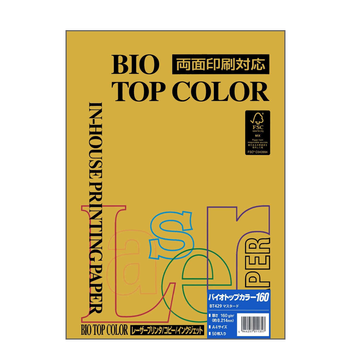 伊東屋 バイオトップカラー BT429 マスタード A4サイズ 160g/m2 50枚入り