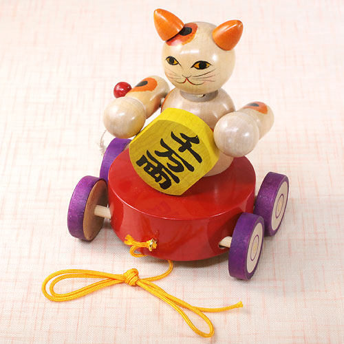 首振りからくり招き猫 一千万両 山形県の木地玩具