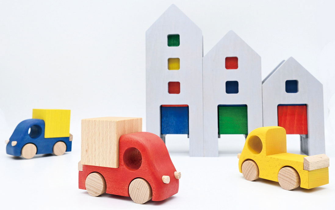 組み木の五月人形 軍配を持つ金太郎とウサギ
