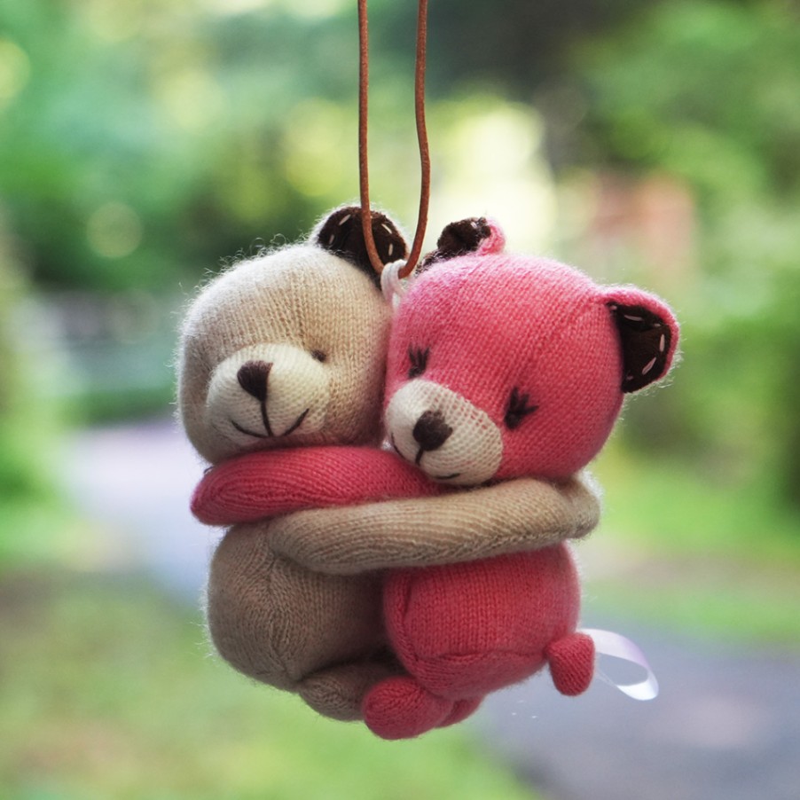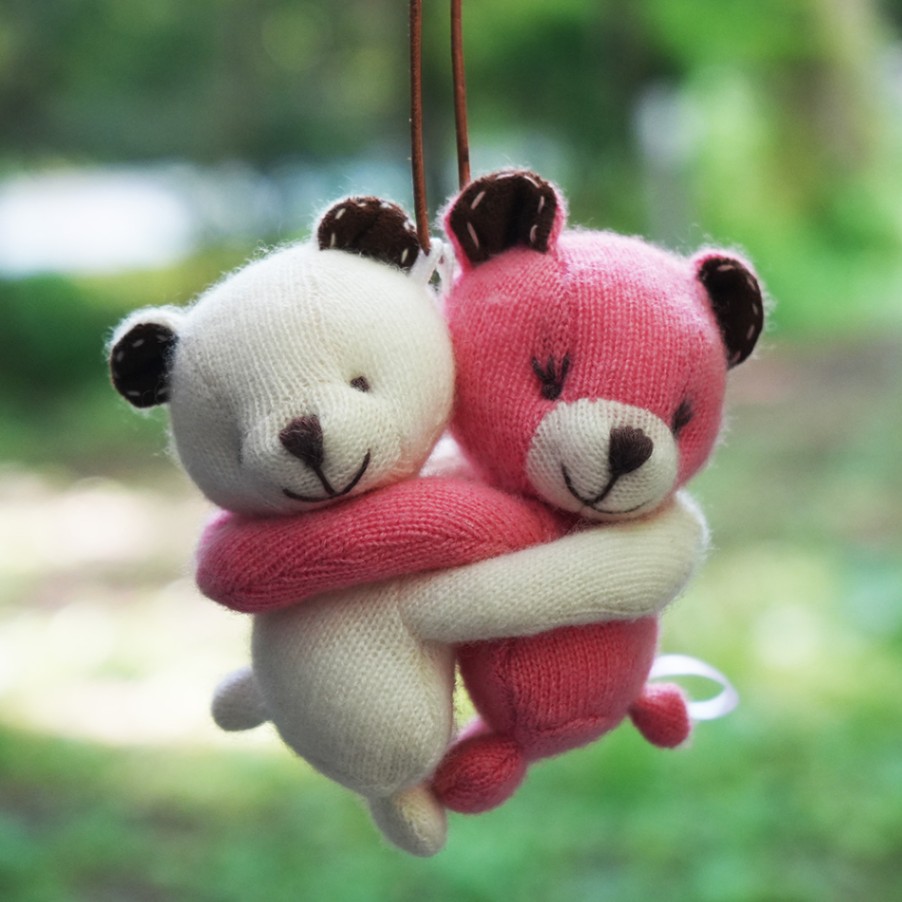 高級カシミヤ製の縁結びハグベア。 ローズ&マジェンタ・ベビー・ハグベア(無染色カシミヤ)【8cm】