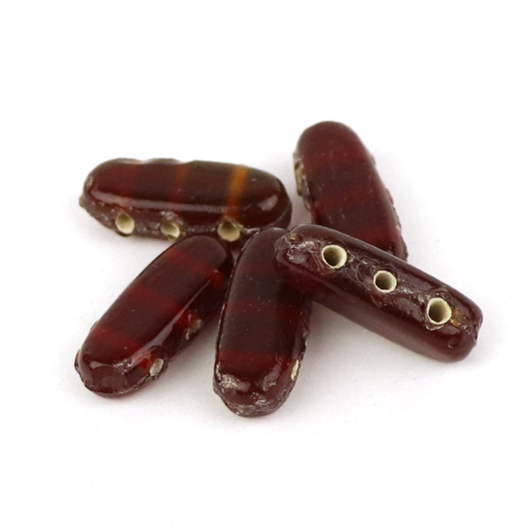 【アウトレット】5個入 インドビーズ ガラス マルチホール 楕円 ダークレッド 真紅 / スペーサー ビーズ ハンドメイド 手作り...