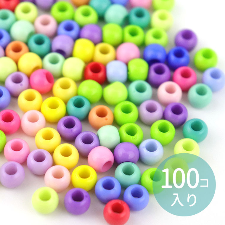 約6mm×5mm アソート 100個入 アクリルビーズ 球形 穴約1.8mm カラフル / バレル型 樽型 ポニービーズ 不透明 ...