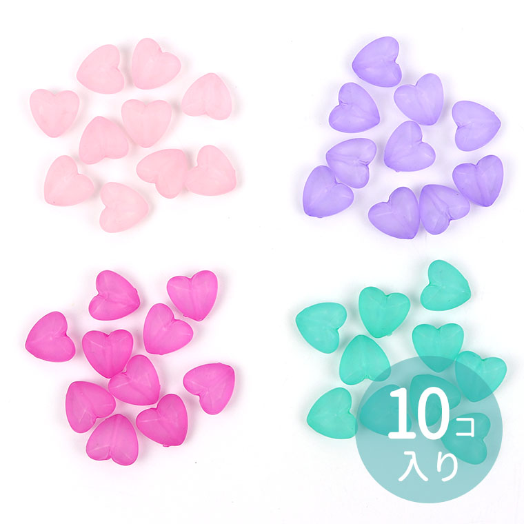 12mm×13mm 10個入 アクリルビーズ ハート ツヤなし 選べる4色 穴1.8mm / カラフル ミックス 半透明 光沢な...