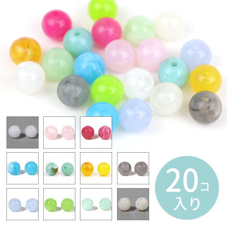約10mm 20個入 アクリルビーズ マーブルカラー 選べる12色 球形 円形 穴2mm / シンプル 手芸 プラビーズ プラスチ...