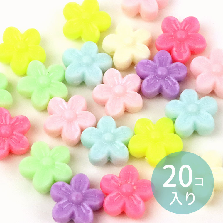 約15mm×15mm アソート20個 アクリルビーズ パステルカラー フラワー 5枚の花びら 大 穴約1.5mm / ツヤあり つ...