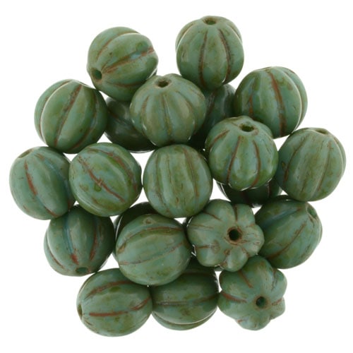 チェコ メロン8mm ピカソ/ターコイズ 1ストランド/25個