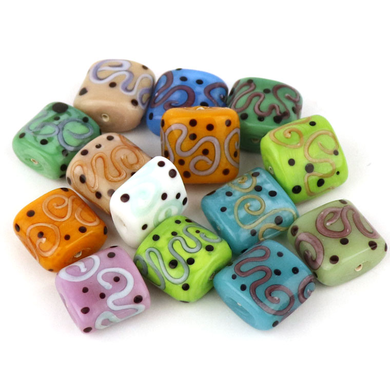 【アウトレット】1個入 インドビーズ セラミック 四角 蛇 ヘビ / ビーズ ハンドメイド 手作り アクセサリー ピアス ネックレ...