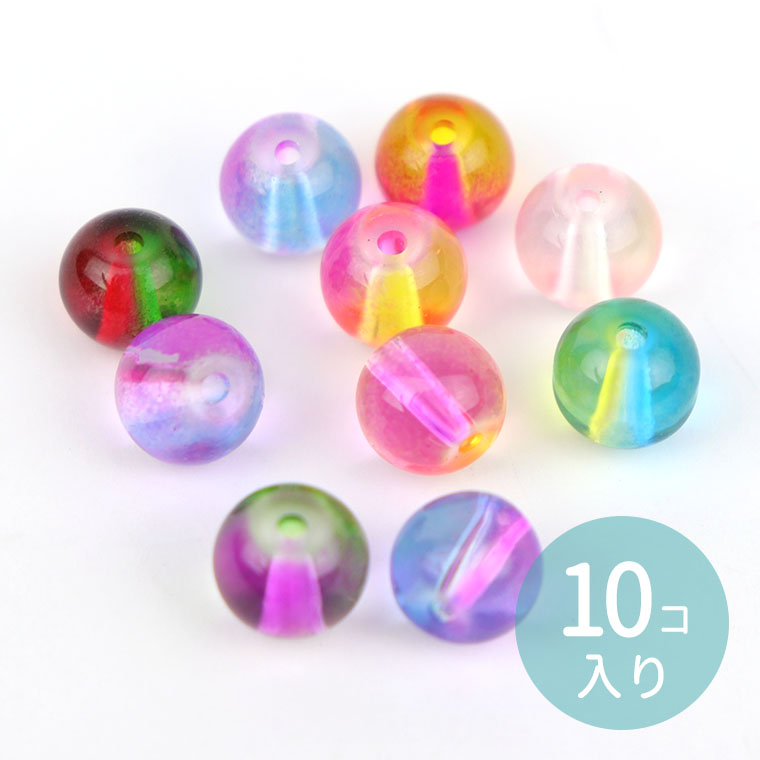 約8mm×7mm アソート10個入 ガラスビーズ 球体 グラデーション 穴約1.2mm / 丸形ビーズ グラスビーズ glass ...