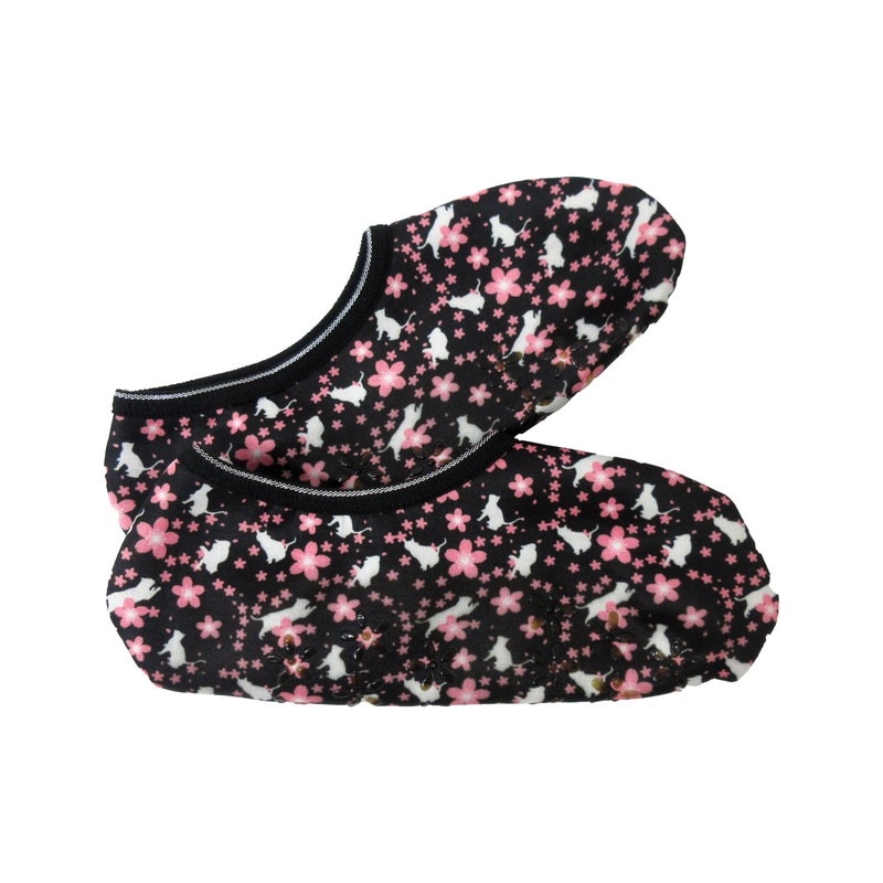 あったかソックス ネコと桜(ゴールド無) ブラック No.303-818