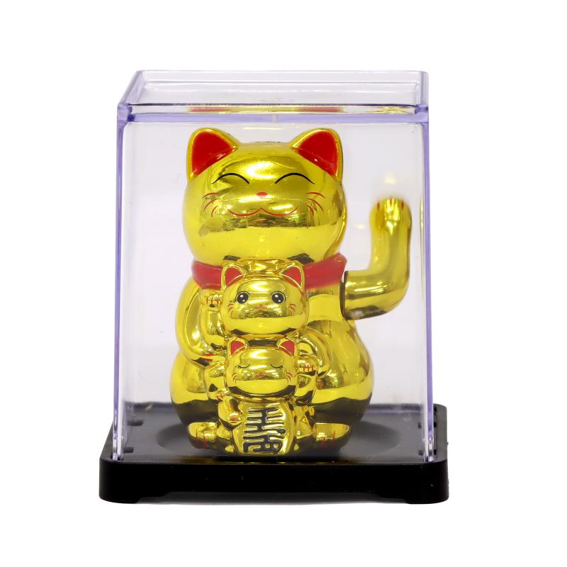 ソーラー招き猫 6cm 親子猫 ゴールド No.208-312