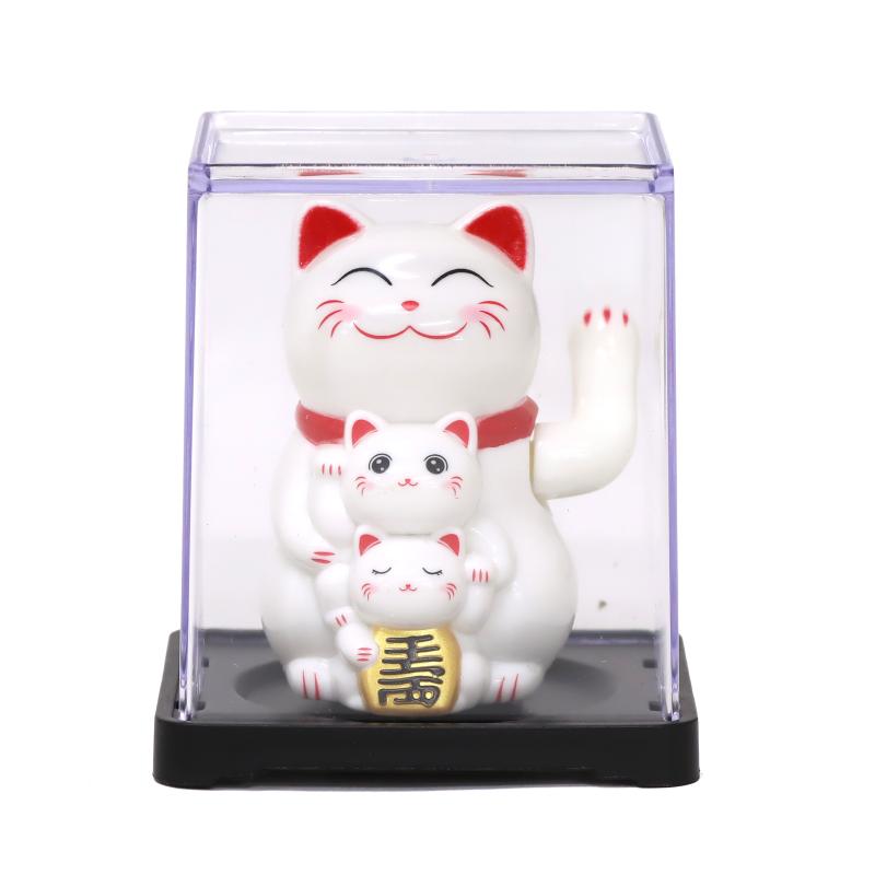 ソーラー招き猫 6cm 親子猫 ホワイト No.208-311