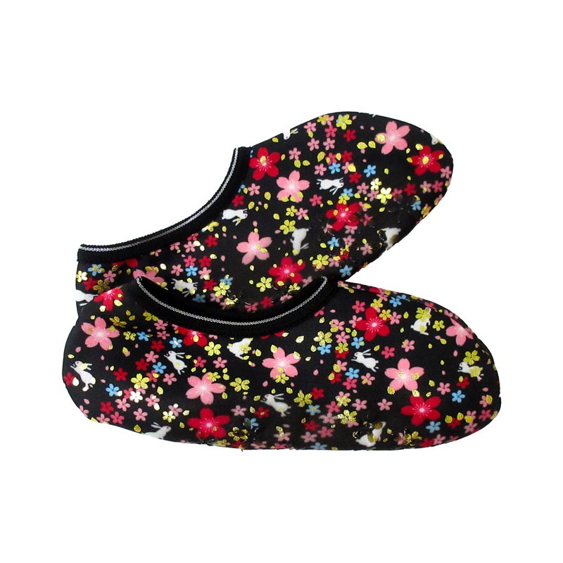 あったかソックス さくらとうさぎ(ゴールド有) ブラック No.303-815
