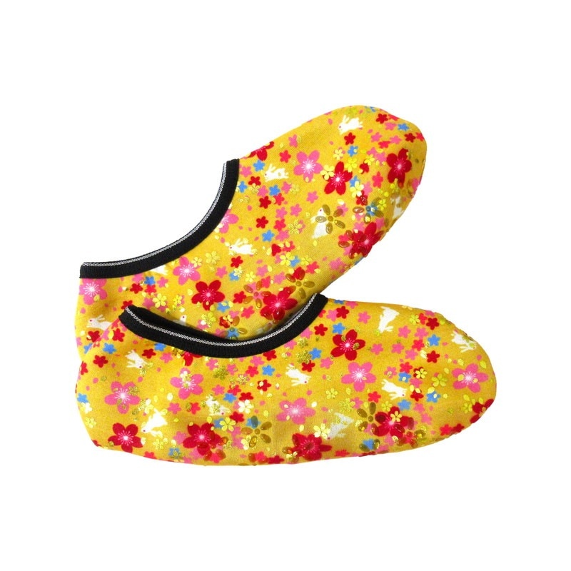 あったかソックス さくらとうさぎ(ゴールド有) からし色 No.303-814