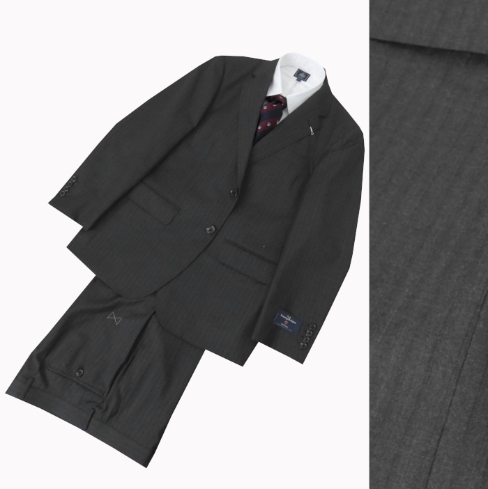 ロロピアーナ スーツ LoroPiana Super130\'s 春夏 チャコールグレイミックスストライプ2つ釦 シングル
