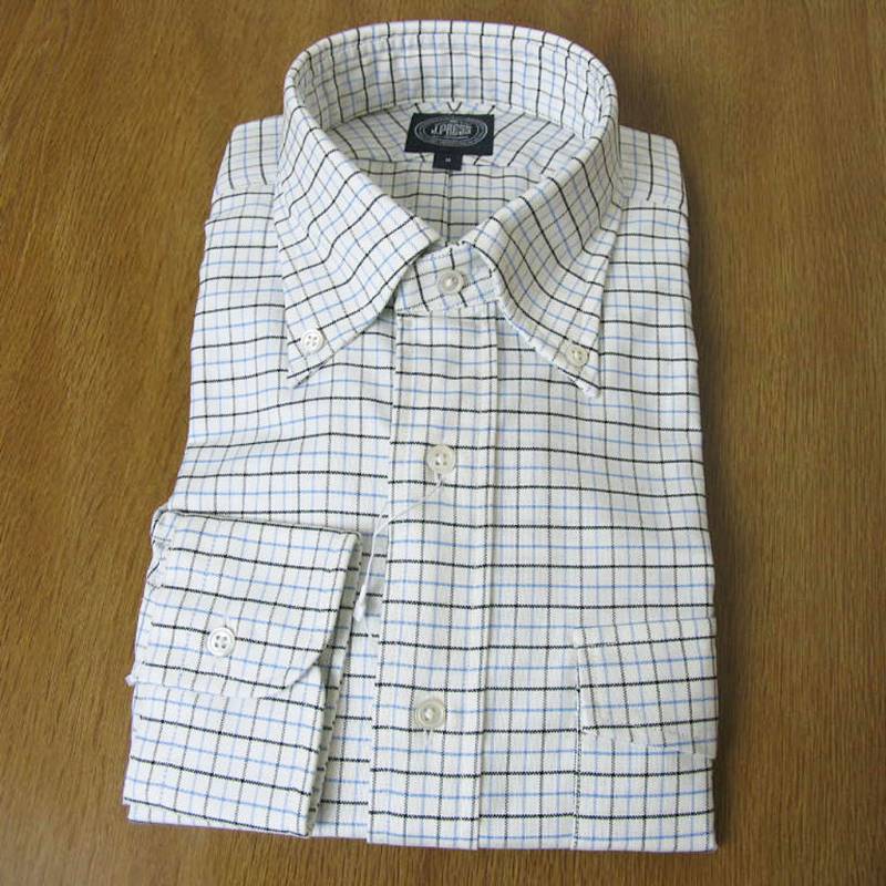 ジェイプレス (J.PRESS) ボタンダウンシャツ メンズ長袖シャツ カジュアルシャツ タッターソールチェック 青×黒 375 ...