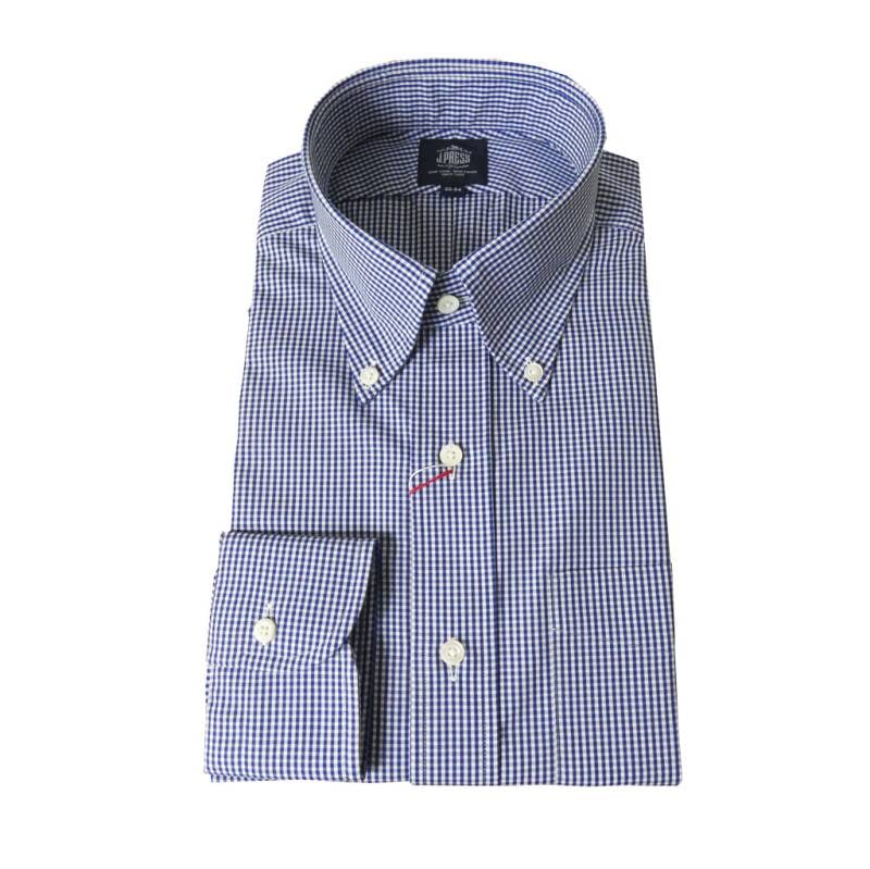 ジェイプレス (J.PRESS) ボタンダウンシャツ メンズ長袖シャツ ネイビー ギンガムチェック 2375 (衿41cm-裄丈...