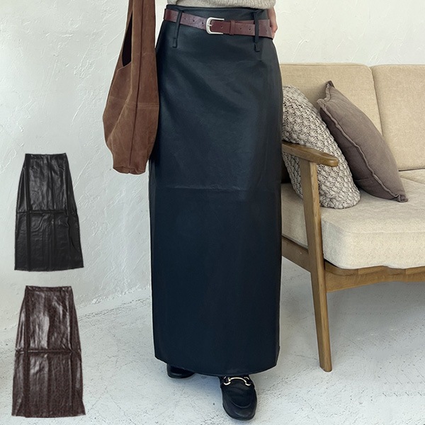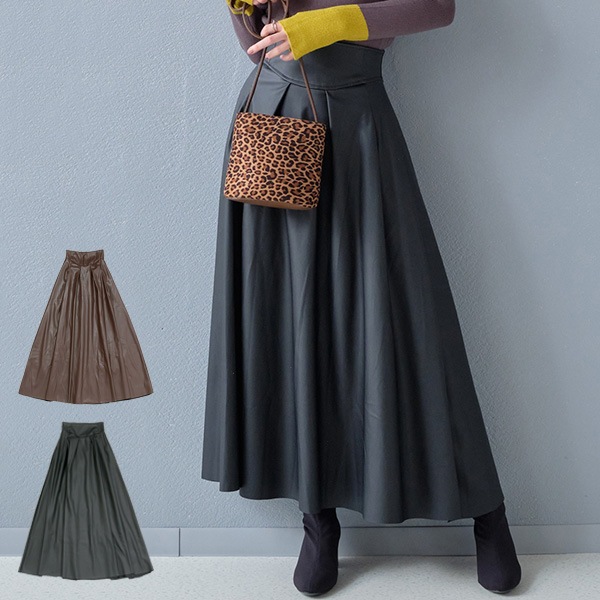 ヒョウ柄・無地レザーライクロングタイトスカート