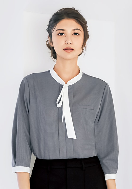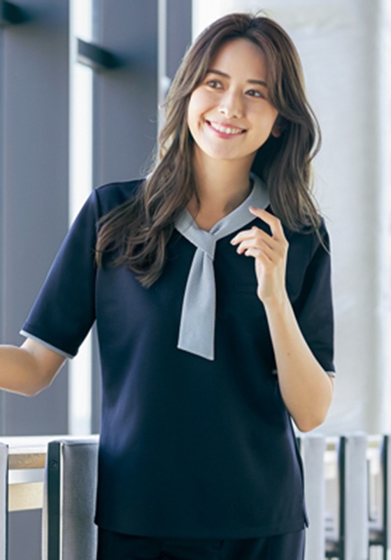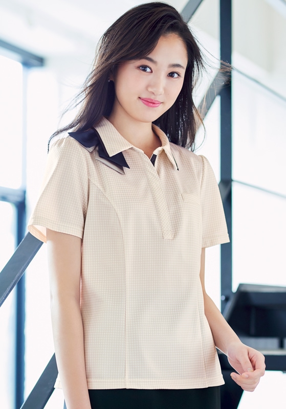 ALPHA PIER アルファピア リボンカラーポロシャツ(七分袖) AR7620