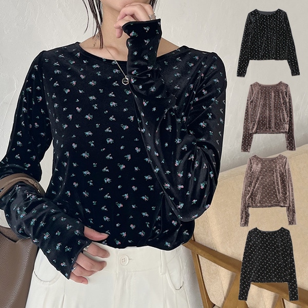 フラワーベロア指開きトップス