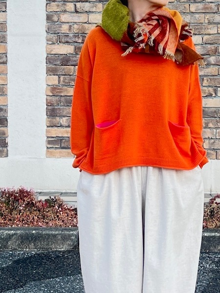 maomade/マオメイド メリノウール配色ポケット付きワイドプルオーバー ・ 551105