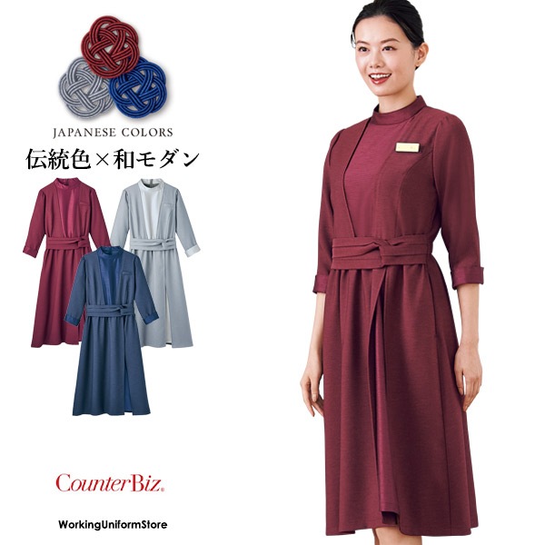 カウンタービズ受付制服 ワンピース 7745 二重織ストレッチツイル コスメ 営業職