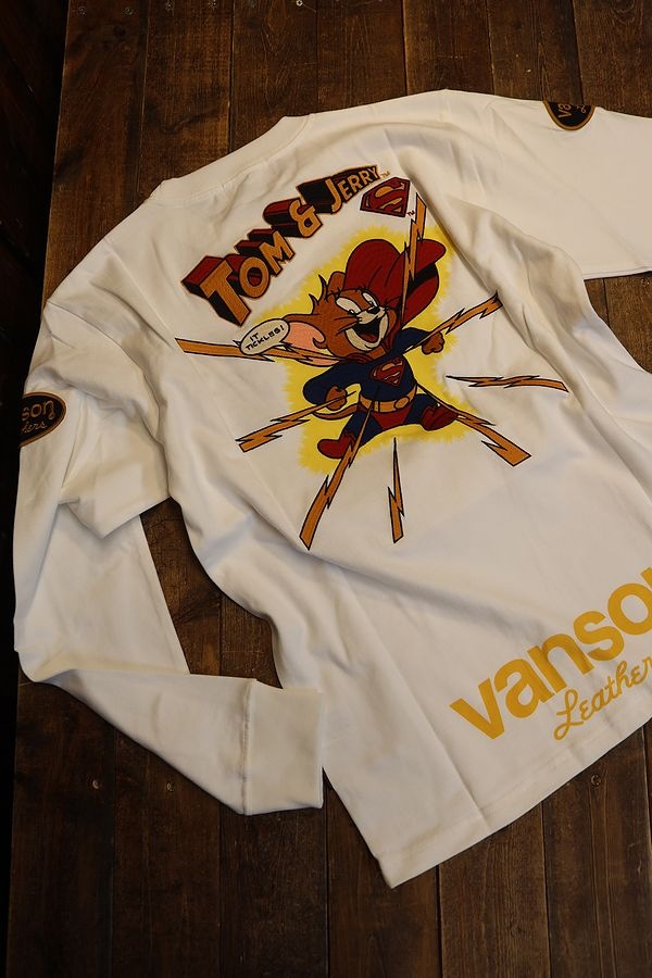 VANSON×Tom and Jerry トムとジェリー TJV-2439 天竺ロンTee スーパーマン オフホワイト