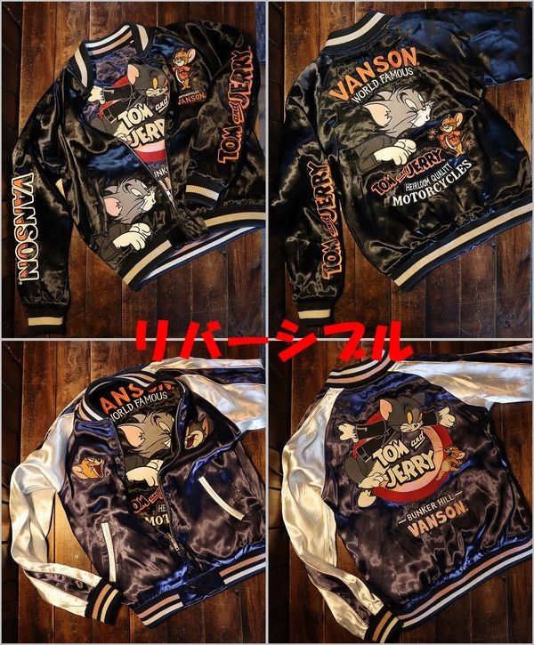 VANSON×Tom and Jerry トムとジェリーコラボ TJV-2340 リバーシブルスカジャン 刺繍 スカジャン