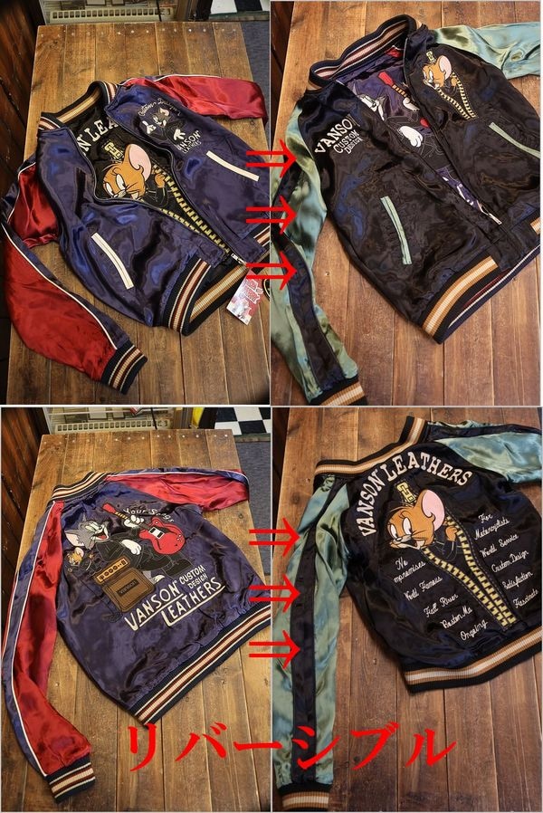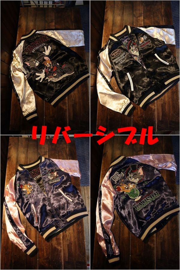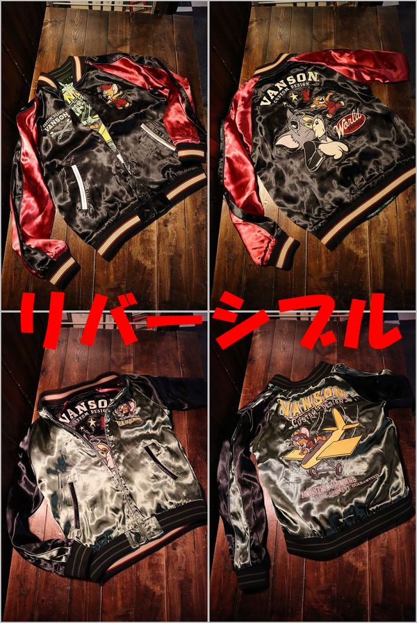 VANSON×Tom and Jerry トムとジェリーコラボ TJV-2306 刺繍 リバーシブルスカジャン