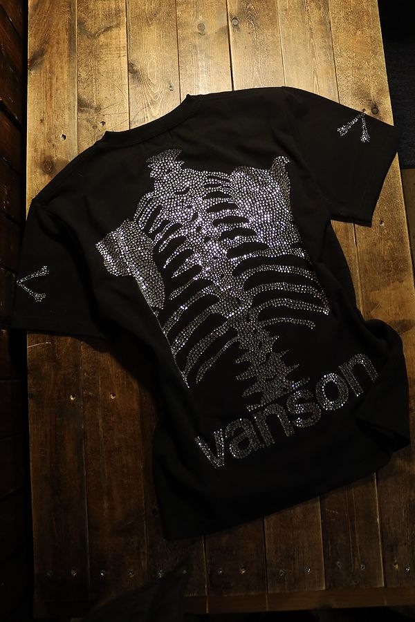 VANSON バンソン NVST-2411 50周年ベア天半袖Tee ラインストーン 50周年ドッグタグ付き ブラック