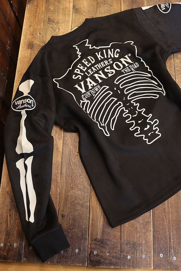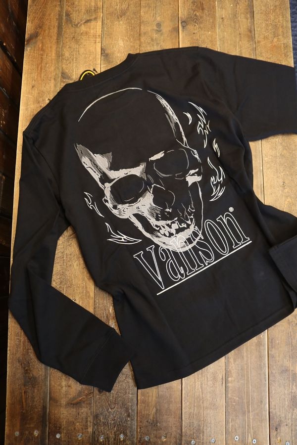 VANSON バンソン(プレミアムライン) NVLT-2517 天竺ロンTee 長袖Tシャツ スカル ブラック